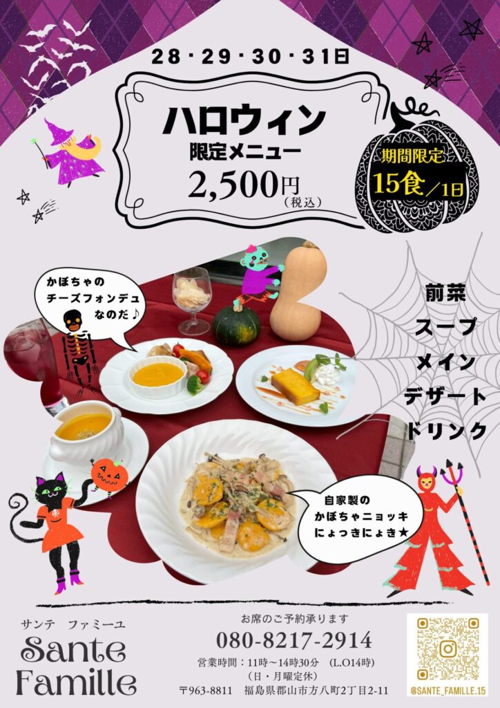 10月28・29・30・31日限定で秋の味覚を贅沢に取り入れた、ハロウィン限定メニューをご用意いたしました。