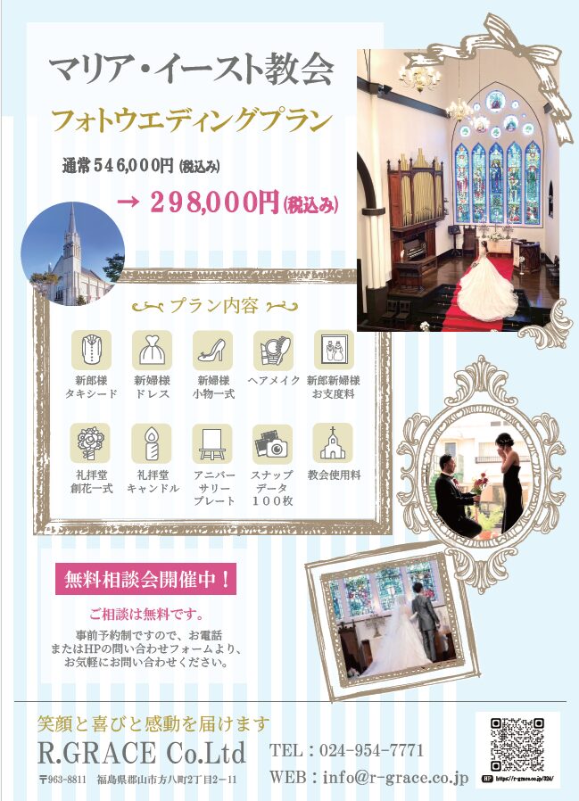 マリア・イースト教会、フォトウェディングプランのご案内です。